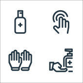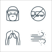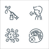 ikony rozprzestrzeniania się wirusa. zestaw liniowy. wysokiej jakości zestaw linii wektorowych, takich jak alkohol, spray czyszczący, oddychanie