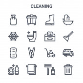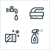 ikony linii czyszczącej. zestaw liniowy. wysokiej jakości zestaw linii wektorowych, takich jak okno, płyta, odkurzacz, proszek do prania, ubrania, pralka, mop, śmieci
