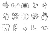 ikony linii narządów ludzkich. zestaw liniowy. wysokiej jakości zestaw linii wektorowych, takich jak macica, mocz, czaszka, język, serce, gałka oczna, jądra, grasica