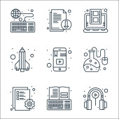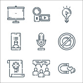ikony linii marketingowych. zestaw liniowy. zestaw linii wektorowych jakości, takich jak artykuł, transfer, zarządzanie pieniędzmi, uce, smartfon, pomysł, informacje zwrotne, grupa docelowa