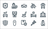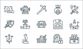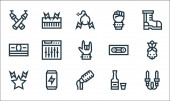 ikony rock 'n' rolla. zestaw liniowy. wysokiej jakości zestaw linii wektorowych, takich jak klawiatura, skrzydła, bilet, ustawienia, bransoletka, spodnie, słuchawki, skórzana kurtka, reflektor