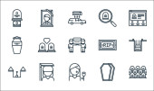 ikony linii kawiarni. zestaw liniowy. wysokiej jakości zestaw linii wektorowych, takich jak piekarnik, talerz, stół, młynek do kawy, lodówka, menu, kelnerka, paragon, kawiarnia