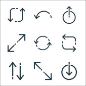 Ikony linii ui. zestaw liniowy. jakość wektor linii zestaw, takich jak strzałka w górę, strzałka w lewo, strzałka w górę, strzałka w dół w górę przeciwnych strzałek, w dół