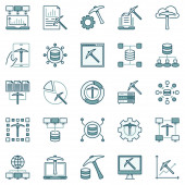ikony linii analityki danych. zestaw liniowy. zestaw linii wektorowych jakości, takich jak analiza danych, programowanie, pulpit nawigacyjny, głębokie uczenie się, chmura obliczeniowa, klasyfikacja danych, łączenie, analityka internetowa, duży