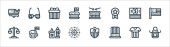 ikony z lipca. zestaw liniowy. wysokiej jakości zestaw linii wektorowych, takich jak usa, świece, megafon, sprawiedliwość, fajerwerki, cd, piwo, usa
