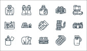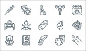 płaskie ikony ratownicze i ochronne. zestaw liniowy. wysokiej jakości zestaw linii wektorowych, takich jak brak wejścia, apteczka, blokada drogi, gwizdek, kamizelka ratunkowa, okulary, stożek, fartuch laboratoryjny