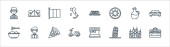 płaskie ikony ratownicze i ochronne. zestaw liniowy. wysokiej jakości zestaw linii wektorowych, takich jak apteczka, okulary, blokada drogi, stożek, maska gazowa, okulary ochronne, kamizelka ratunkowa
