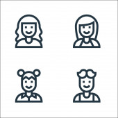 Ludzie ustawiają ikony. zestaw liniowy. wysokiej jakości zestaw linii wektorowych, takich jak tłuszcz, kobieta, mężczyzna, broda, dziewczyna, kobieta, chłopiec, kobieta, chłopiec