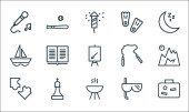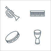 ikony linii instrumentów muzycznych. zestaw liniowy. wysokiej jakości wektor linii zestaw, takich jak mikrofon, nuty muzyczne, instrument muzyczny, dholak, sitar, francuski róg, dholak, nuty muzyczne, snare bęben