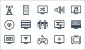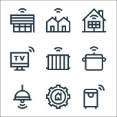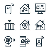 płaskie ikony linii smarthome. zestaw liniowy. wysokiej jakości wektor linii zestaw, takich jak zasilanie, wtyczka, mikrofon, automatyka domowa, blokada drzwi, niebezpieczeństwo, alarm, wifi