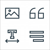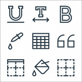ikony linii edytora tekstu. zestaw liniowy. zestaw linii wektorowych jakości, takich jak prawe tiret, granica, granica, cytat, tekst, duża litera, nożyczki, granica