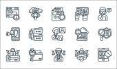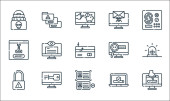 ikony linii hakerów. zestaw liniowy. wysokiej jakości wektor linii zestaw, takich jak czaszka, haker, złośliwe oprogramowanie, kradzież danych, oszustwo, bitcoin, haker, hasło, wifi