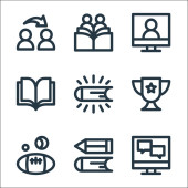 ikony linii nauki online. zestaw liniowy. zestaw linii wektorowych jakości, takich jak pytanie, wynik, wyszukiwanie, ołówek, stopniowanie, matematyka, elearning, informacje
