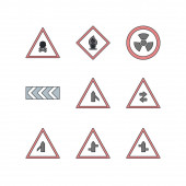 ikony linii sygnalizacyjnych. zestaw liniowy. zestaw linii wektorowych jakości, takich jak wąski, iść prosto lub w prawo, ruch, t skrzyżowanie, skrzyżowanie, bez zatrzymania, skrzyżowanie, bez prostej