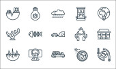 ikony Dnia Matki Ziemi. zestaw liniowy. wysokiej jakości zestaw linii wektorowych, takich jak kalendarz, bateria, tarcza, ziemia, energia, ręka, panel słoneczny, recykling, samochód elektryczny