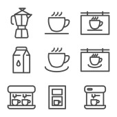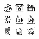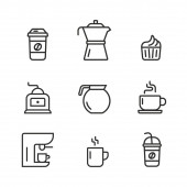 ikony linii kawy. zestaw liniowy. wysokiej jakości zestaw linii wektorowych, takich jak filiżanka kawy, barista, ziarna kawy, gorąca fasola, gorąca maszyna, ekspres