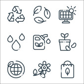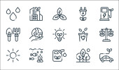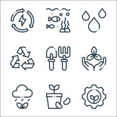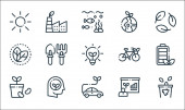 ikony linii ekologicznej. zestaw liniowy. zestaw linii wektorowych jakości, takich jak energia, ekologia, co, miasto, roślina, nasiona, energia, recykling