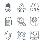 ikony środowiska i linii ekologicznych. zestaw liniowy. wysokiej jakości zestaw linii wektorowych, takich jak energia wiatru, żywność ekologiczna, zioło, energia, energia ekologiczna, pompa paliwa, drzewo, doniczka