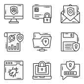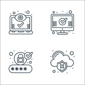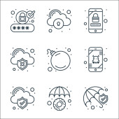 ikony linii zabezpieczeń internetowych. zestaw liniowy. zestaw linii wektorowych jakości, takich jak dokument, przechowywanie serwera, dokument, atak, karta cit, logowanie, zamek, atak cybernetyczny