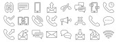 ikony linii komunikacyjnych. zestaw liniowy. zestaw linii wektorowych jakości, takich jak poczta, czat bąbelkowy, komunikacja, poczta, interakcja, poczta, komunikacja,