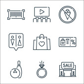 ikony linii zakupów online. zestaw liniowy. zestaw linii wektorowych jakości, takich jak sklep, koszyk, otwarty, laptop, sprzedaż, pudełko, sklep internetowy, strony, sklep internetowy