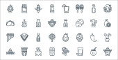 ikony linii spa. zestaw liniowy. wysokiej jakości zestaw linii wektorowych, takich jak aromat, manicure, olejek eteryczny, szczotka, śmietana, słoik miodu, depilacja, akupunktura