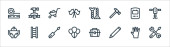 ikony linii mody. zestaw liniowy. wysokiej jakości zestaw linii wektorowych, takich jak torebka, koszula, strój kąpielowy, okulary, makijaż, sweter, buty sportowe, torba na ramię