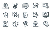 ikony linii e-commerce. zestaw liniowy. zestaw linii wektorowych jakości, takich jak koszyk, lista życzeń, aukcja, zakupy online, zakupy mobilne, analiza danych, wysyłka na całym świecie, voucher, pudełko zwrotne