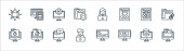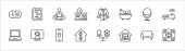 ikony linii biura domowego. zestaw liniowy. wysokiej jakości zestaw linii wektorowych, takich jak pieniądze, dom, półka na książki, router, laptop, projektor, wanna, dom