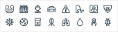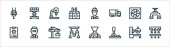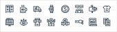 ikony linii produkcyjnych. zestaw liniowy. wysokiej jakości zestaw linii wektorowych, takich jak przenośnik taśmowy, system sterowania, syrena, zbiornik, samochód ciężarowy, laptop, pakiet, prasa maszynowa