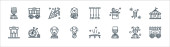 ikony z lipca. zestaw liniowy. wysokiej jakości zestaw linii wektorowych, takich jak patriota, szarlotka, th of july, bęben, fajerwerki, gwiazda, kawa, usa