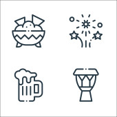 ikony świętowania linii. zestaw liniowy. wysokiej jakości zestaw linii wektorowych, takich jak pizza, kieliszek do wina, szampan