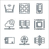 Zdjęcie "ikony linii technologicznych. zestaw liniowy. wysokiej jakości zestaw linii wektorowych, takich jak zacisk, usb, odtwarzacz wideo" może być wykorzystywane do celów osobistych i komercyjnych zgodnie z warunkami zakupionej licencji Royalty-free. Obraz jest dostępny do pobrania w jakości wysokiej rozdzielczości do 5760x3840.