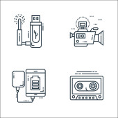 ikony linii technologicznych. zestaw liniowy. wysokiej jakości zestaw linii wektorowych, takich jak zacisk, usb, odtwarzacz wideo