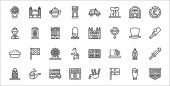 Stany Zjednoczone Ameryki ikony linii. zestaw liniowy. wysokiej jakości zestaw linii wektorowych, takich jak Waszyngton pomnik, budynek, Ameryka, dolar, pustynia, dynia, automat do gry, hollywood star, usa