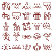 ikony linii przywódczej. zestaw liniowy. zestaw linii wektora jakości, takich jak przywództwo, zespół, wspinaczka, spotkanie, przywództwo, związek, burza mózgów, mistrz