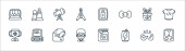 zatrzymać ikony linii wirusów. zestaw liniowy. wysokiej jakości zestaw linii wektorowych, takich jak oddychanie, recepta, papier toaletowy, lekarz, ból gardła, cardio, kolej, samolot, rękawice gumowe