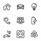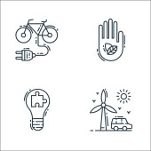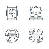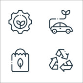 ikony linii ekologicznej. zestaw liniowy. wysokiej jakości zestaw linii wektorowych, takich jak samochód, miasto, rower, ekologiczny, globalne ocieplenie, słońce, dom, wodociąg