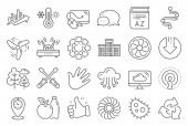 ikony linii zmian klimatycznych. zestaw liniowy. wysokiej jakości zestaw linii wektorowych, takich jak trzęsienie ziemi, koronawirus, fabryka, kość rybna, globalne ocieplenie, zanieczyszczenie powietrza, wieloryb, czaszka, ładowanie baterii