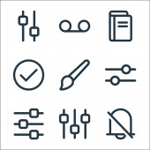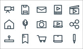 Zdjęcie "ikony linii interfejsu użytkownika. zestaw liniowy. wysokiej jakości zestaw linii wektorowych, takich jak przycisk odtwarzania, okulary przeciwsłoneczne, trybik, powiadomienie, gwiazda, dane, aktualności, touchpad, tarcza" może być wykorzystywane do celów osobistych i komercyjnych zgodnie z warunkami zakupionej licencji Royalty-free. Obraz jest dostępny do pobrania w jakości wysokiej rozdzielczości do 5760x3840.