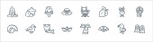 ikony linii dżungli. zestaw liniowy. wysokiej jakości zestaw linii wektorowych, takich jak stołówka, pantera, liść, motyl, bez cięcia, góra, aligator, kapelusz, grzyb