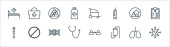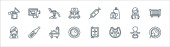 ikony linii elektroniki. zestaw liniowy. wysokiej jakości zestaw linii wektorowych, takich jak lampa biurkowa, drukarka, tv, maszynka do golenia, klimatyzacja, dysk twardy, wentylator, odkurzacz