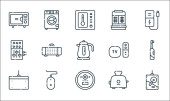 ikony linii elektroniki. zestaw liniowy. wysokiej jakości zestaw linii wektorowych, takich jak lampa biurkowa, przyciski, kalkulator, power bank, wtyczka, dysk twardy, konsola, tablet, tv