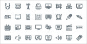 ikony linii elektroniki. zestaw liniowy. wysokiej jakości zestaw linii wektorowych, takich jak pilot zdalnego sterowania, mikser, odkurzacz, GPS, monitor, tablet graficzny, termostat, czajnik, piekarnik