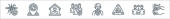 ikony linii ryzyka biznesowego. zestaw liniowy. zestaw linii wektorowych jakości, takich jak decyzja, trzęsienie ziemi, partnerstwo, finanse, pożar, innowacje, strategiczne