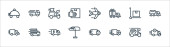 ikony linii mebli. zestaw liniowy. wysokiej jakości zestaw linii wektorowych, takich jak łóżko, miska, alarm, lustro, toaleta, lodówka, mikrofalówka, zasłona