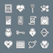 ikony linii miłosnych. zestaw liniowy. wysokiej jakości wektor linii zestaw, takich jak dzień ślubu, wieszak drzwi, puzzle, planeta, miłość, dokument, klucz, szukaj