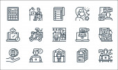 ikony ikon domowej linii paczki. zestaw liniowy. wysokiej jakości zestaw linii wektorowych, takich jak praca, praca w domu, czat online, praca, przesyłanie plików, miejsce pracy, dostawa do domu