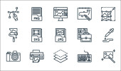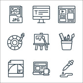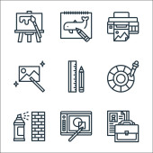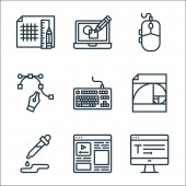 ikony projektów graficznych. zestaw liniowy. wysokiej jakości zestaw linii wektorowych, takich jak pióro, złoty stosunek, malowanie