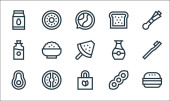 Wegańskie ikony linii. zestaw liniowy. wysokiej jakości zestaw linii wektorowych, takich jak tofu burger, agawa, pomidor, grzyb, kiwi, ciasto marchewkowe, olej kokosowy, arbuz